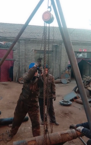 就像圖片中的環境一樣,低矮的院落,滿是泥坑的地面,貧苦的人們,用倒鏈將地下一個滿是腐蝕的管道吊裝起來,在拉動鏈條的過程中,雖然有些微的吃力,但是看著大噸位的管道一點點被吊起來,操作人的臉上也笑開了花。