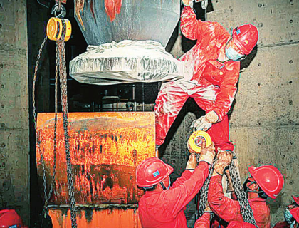 某石油化工廠每年會定期舉行2次機械設備大檢和大修工作,夏季檢修工作的重點是煉油廠焦化裝置檢修,檢修人員在悶熱的車間內不停的拉動著手拉倒鏈,將各個笨重的零部件吊裝到高處。