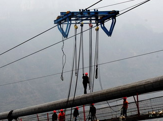 手拉葫蘆用于花江峽谷大橋貓道搭建施工